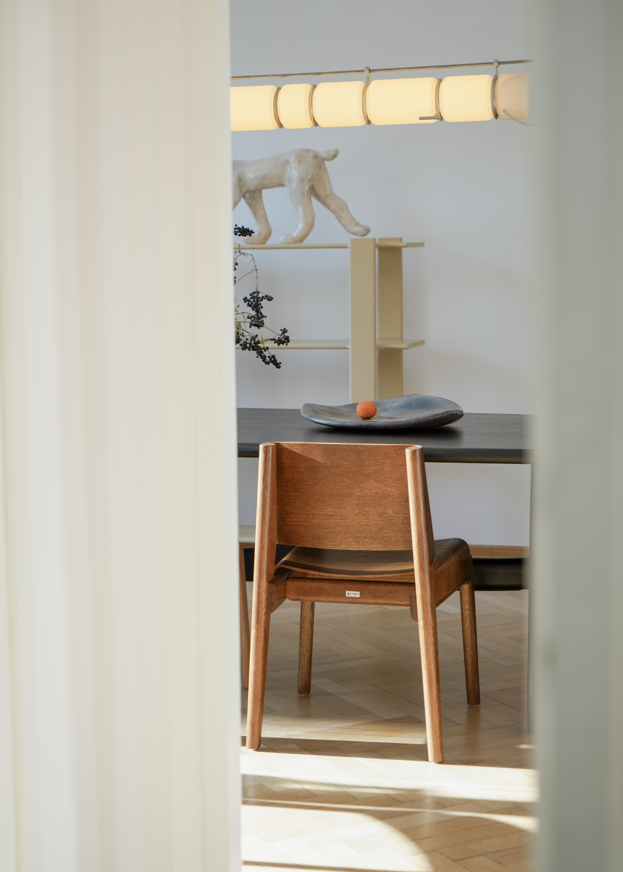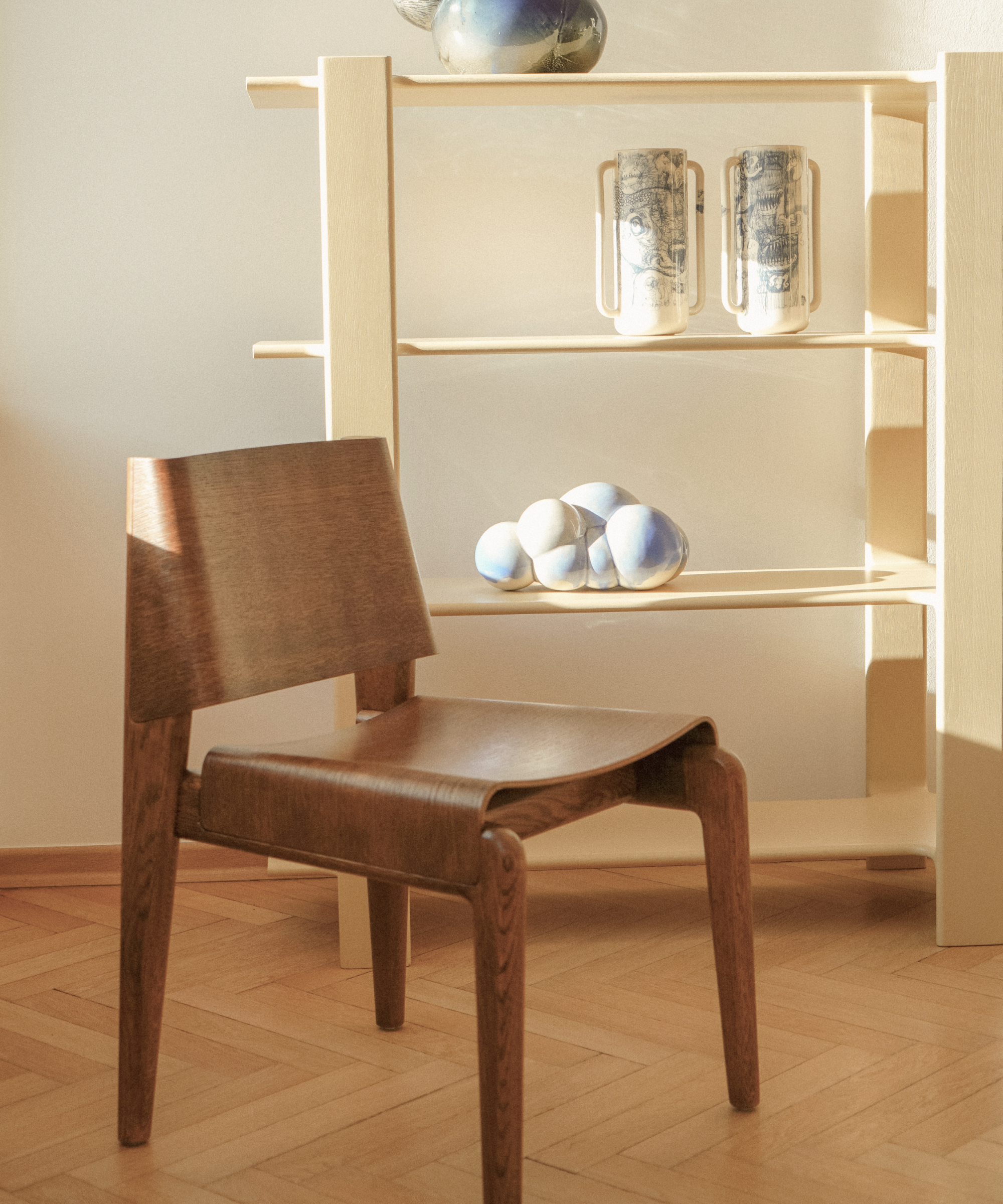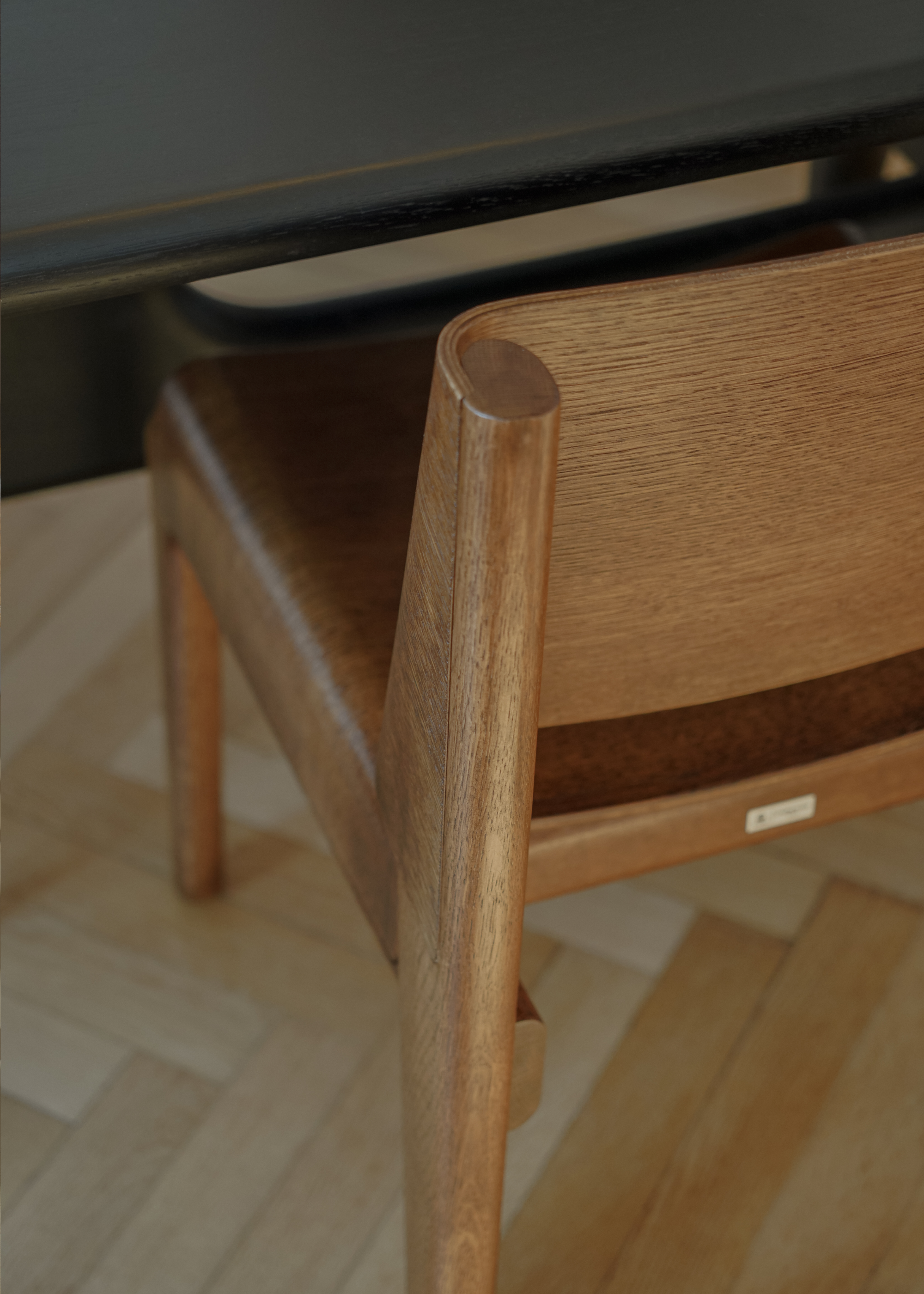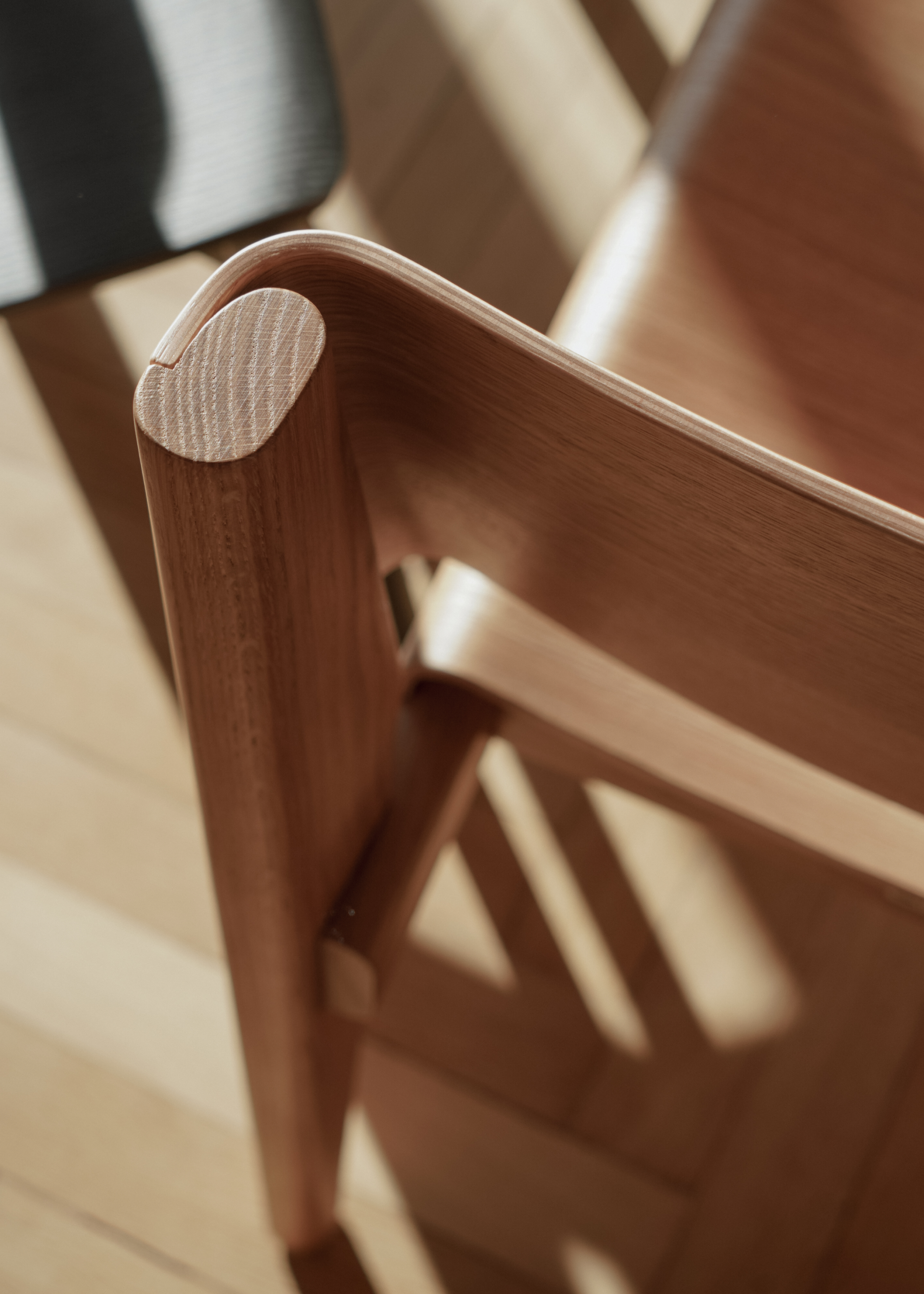 Les courbes douces du contreplaqué apportent une souplesse naturelle à la silhouette, tandis que la structure en chêne offre stabilité et solidité tout en restant visuellement discrète. UNDIA introduit dans l’espace une ligne calme et harmonieuse présente, mais jamais intrusive.