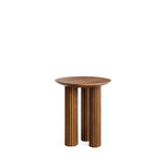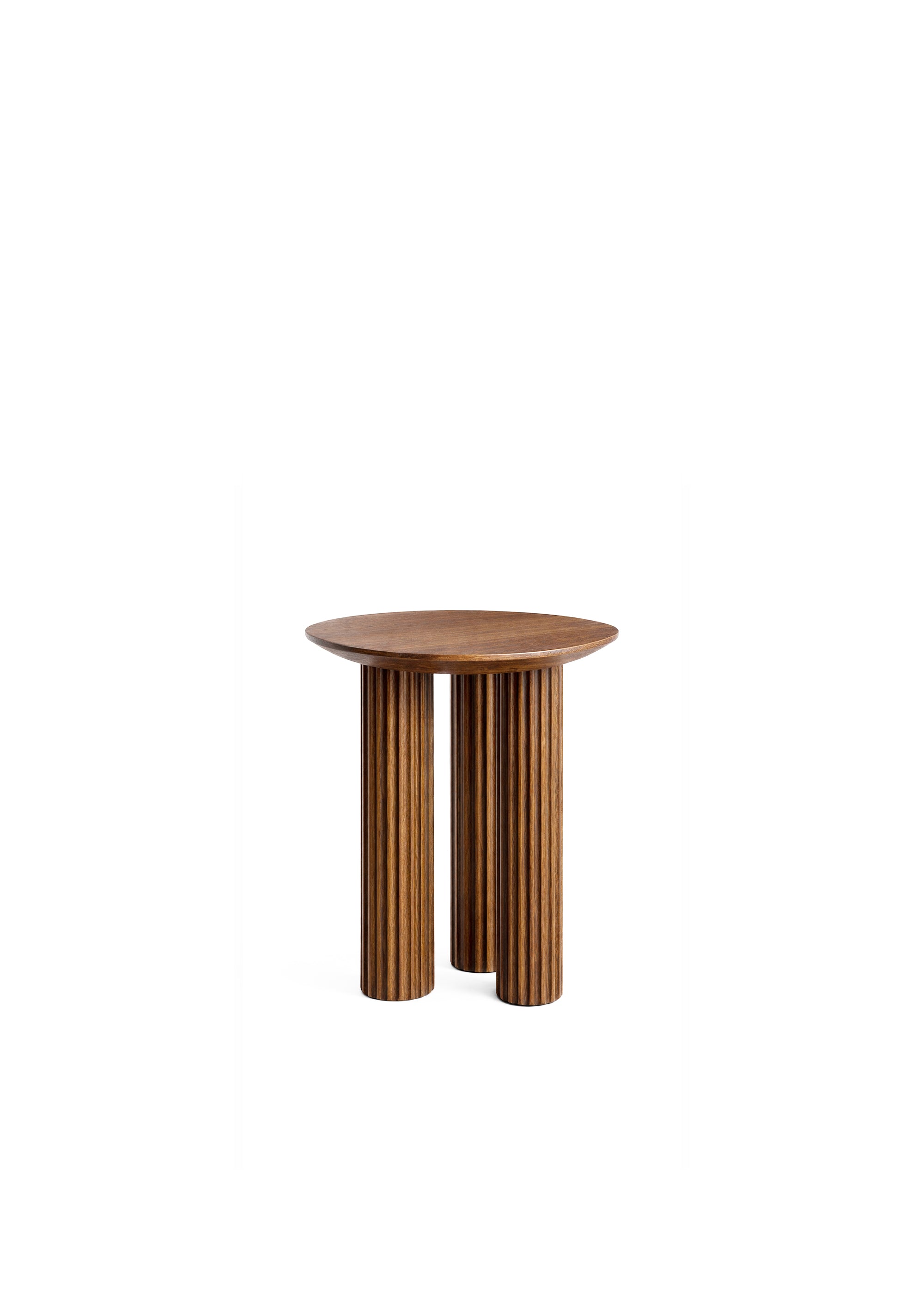 Le plateau de la table présente un bord légèrement arrondi qui semble visuellement plus fin qu'il ne l'est en réalité - un effet obtenu grâce à un fraisage angulaire sur la face inférieure. Ce détail met subtilement en valeur l'élégance sculpturale des pieds cannelés. Le motif nervuré rappelle la forme d'une colonne architecturale classique, en référence au rôle ancien des piliers en tant qu'éléments structurels et symboliques.