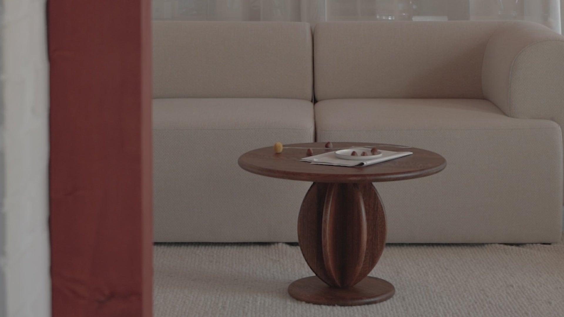 Stoliki TAMO odnajdują się w wielu estetykach - od minimalizmu i stylu japandi po bardziej dekoracyjne aranżacje. Jasne wykończenia, takie jak Natur oak czy Olive oak, wprowadzają miękkość i optyczną lekkość, z kolei Dark oak i Black oak dodają głębi i intensywności. Bordowy stolik kawowy Burgundy ash podkreśla mocniejszy akcent, a czarny Black ash zapewnia wyraźny kontrast i współgra z kolekcją oświetlenia TAMO.