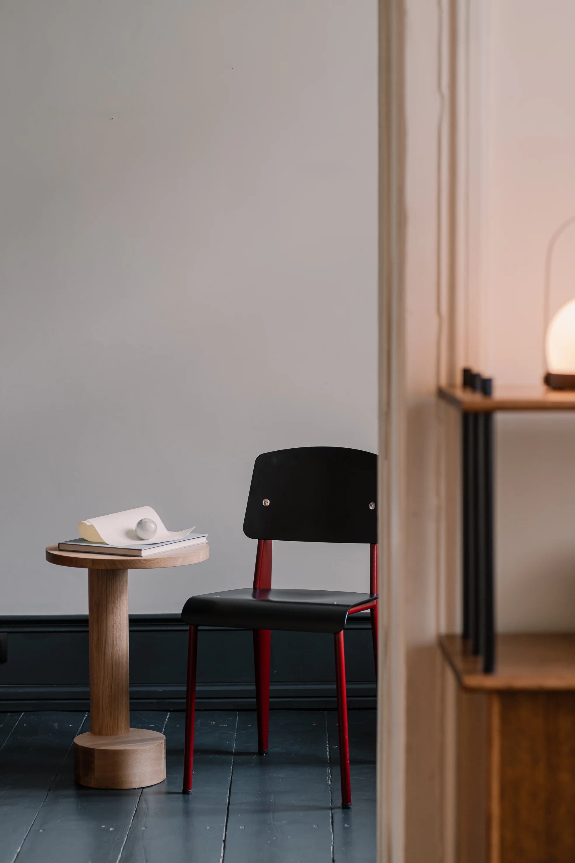 ciekawą kompozycję z naszą vintage chromowo-czarną lampą. Lubimy takie