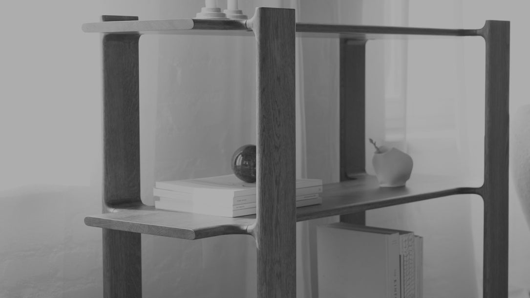 LIGO to regał, który łączy w sobie spokojną pewność konstrukcji z przemyślaną grą formy i funkcji. Jego najbardziej charakterystycznym elementem jest sposób, w jaki nogi płynnie przechodzą w półki – to połączenie o walorze zarówno konstrukcyjnym, jak i rzeźbiarskim, gdzie krzywizny zastępują kąty, a detal staje się formą.