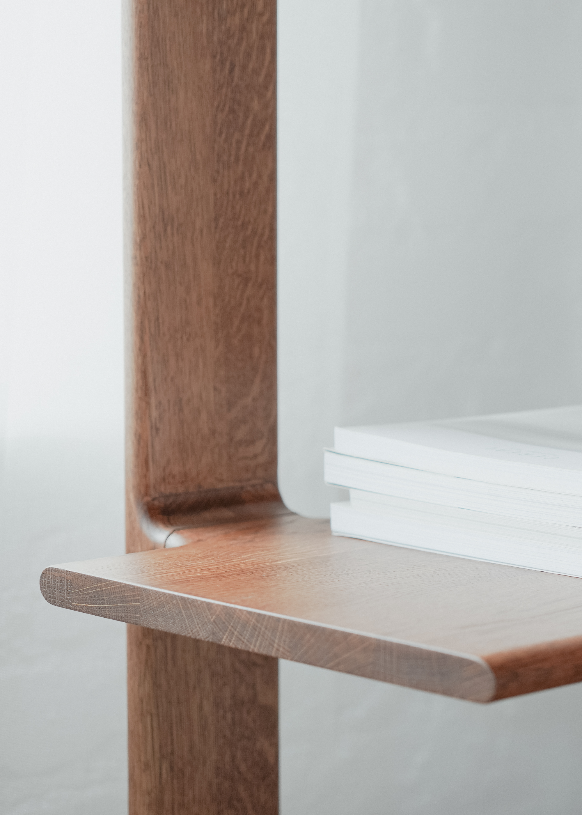 LIGO is a bookcase designed with clarity, balance, and precision in mind. Crafted entirely from solid oak, it features a unique construction detail where the vertical legs flow seamlessly into the horizontal shelves — a sculptural gesture that eliminates hard edges in favor of soft transitions.