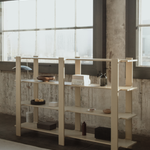 LIGO is a bookcase designed with clarity, balance, and precision in mind. Crafted entirely from solid oak, it features a unique construction detail where the vertical legs flow seamlessly into the horizontal shelves — a sculptural gesture that eliminates hard edges in favor of soft transitions.