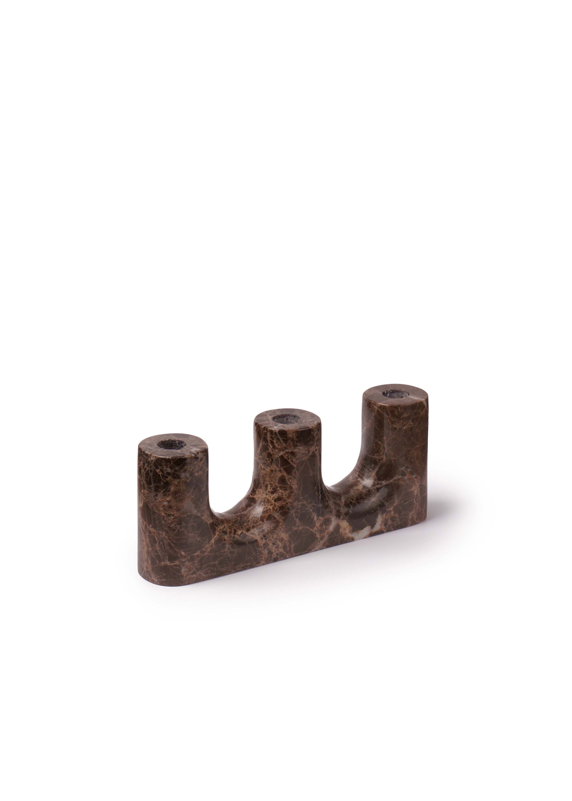 Trilo is a candle holder made of marble with three slots. Each piece is unique, thanks to the natural patterns of the stone. It brings warmth and unique character to the interior.